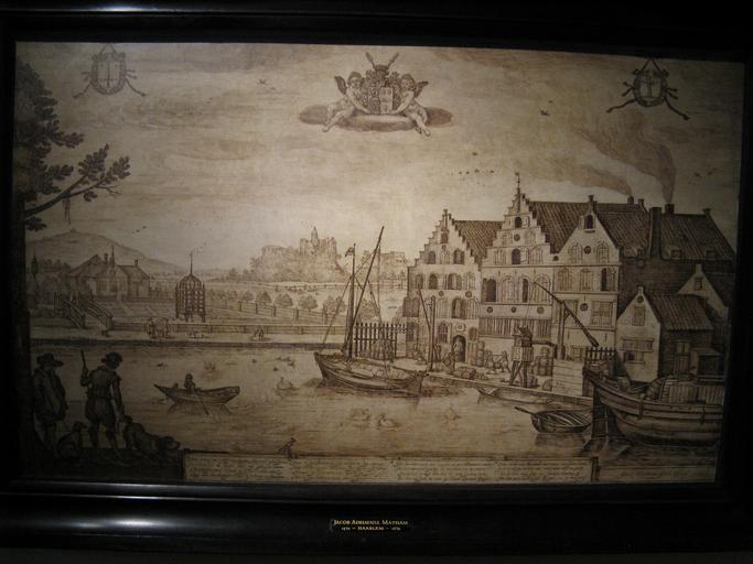 | Keywords: WLANL - legalizefreedom - Gezicht op de brouwerij `De Drie Leliën'.jpg en View of the De Drie Leliën Brewery on the Spaarne Haarlem and behind it a view of Velserend Manor near Berckerode not on the Spaarne Both locations were owned by Johan Claesz van Loo Pen-painting nl Jacob Matham “ Gezicht op de brouwerij `De Drie Leliën' en de hofstede `Velserend' oil on panel 71 x 116 cm http //www flickr com/photos/39011129 N07/3598399723/ Gezicht op de brouwerij `De Drie Leliën' 1627 photo date 2009-06-05 11 29 <br/> by http //www flickr com/people/39011129 N07 Niek Sprakel from Utrecht Netherlands Creator Jacob Matham PD-old-100 WLANL Multichill 2009-08-26 ImageNote 1 364 314 104 55 1024 768 2 Berckenrode ImageNoteEnd 1 ImageNote 2 562 287 289 234 1024 768 2 <gallery>File WLANL - hajeka - Brouwerij De Drie Lelien jpg</gallery> Brewery and city address of Johan Claesz Loo ImageNoteEnd 2 ImageNote 3 52 339 301 119 1024 768 2 Summer buitenhuis Velserend of Johan Claesz Loo ImageNoteEnd 3 ImageNote 4 248 614 148 44 1024 768 2 Dit's 't Huijs en 't Hof van Loo het Huijs staet op het Sparen <br/> In 't beste van de stad daer onse schepen varen <br/> De Hofstee wel bekend op synen naem van Loo<br/> Leyt aen der duynen kant bij 't Huijs te Bredero ImageNoteEnd 4 ImageNote 5 398 616 131 44 1024 768 2 Daer is syn Brouwerij sijn arbeijd en sijn nering <br/> Daer wacht hij van den Heer sijn segen en sijn tering <br/> Hier is sijn Lust-vertreck hier is sijn speel-prieel <br/> Dit is sijn last en lust dit is sijns levensdeel ImageNoteEnd 5 ImageNote 6 535 617 137 42 1024 768 2 Is 't brouwen niet een angst en een bekommerd woelen <br/> Dit is voorwaar genoeg te mercken en te voelen <br/> Hoe billick is het dan dat hij wat spelens heeft<br/> En dat hij sich te niet op 't land tot rust begeeft ImageNoteEnd 6 ImageNote 7 675 618 129 44 1024 768 2 Wat is 't ook van den woel van 't arme menschenleven<br/> Indien wij nu en dan ons niet wat wils en geven <br/> En breken onse sorg en swaren kommer af <br/> Totdat men rusten sal by Got en in het graf ImageNoteEnd 7 Cityscape paintings Jacob Matham Paintings in the Frans Hals Museum 1627 paintings Grisaille Velsen Spaarne De Drie Leliën |