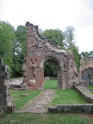 Keywords: Woerschweiler abbey portal.JPG Western front of the abbey church of Woerschweiler http //www saarchaeologie de/galerie/woerschweiler htm 2003 Johannes Simon Kloster Wörschweiler