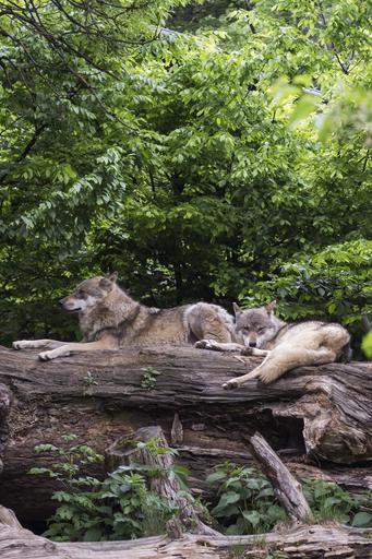 Keywords: wolves wolf european wolf european wolves canis lupus predator animals two wolves dormant summer tree pack pack animal zoo