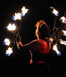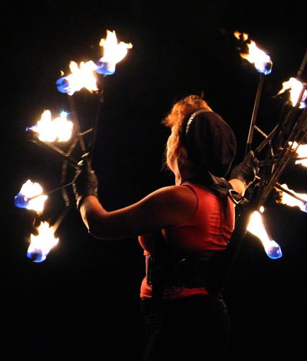 Keywords: woman artist fire show fire flame artfully human female body event torch juggle dark light kindle burn alcohol zirkel demonstration