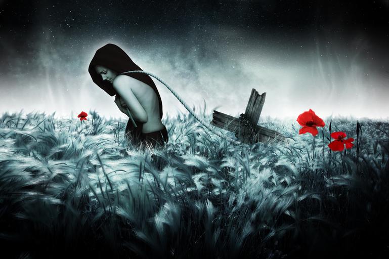 | Keywords: woman beautiful field dark lonely cornfield at night religion cross bear drag beautiful woman young woman fog mystical mood gespenstig fairytale atmosphere weird darkness creepy sky gloomy moonlight spooky mysterious scene fantasy light blue lighting photo montage shadow last |
