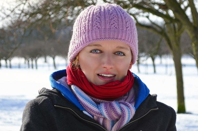 Keywords: woman color nice happy modern young face eyes eye view season fashion hat people women scarf hood