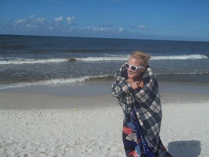 Keywords: woman girl sea beach the baltic sea the coast sand poland summer water nature landscapes cold cloud cover holidays