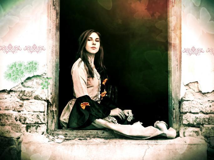 | Keywords: woman girl young pretty beautiful young girl young woman pose princess feminine dress temptation femininity seductive frilly dress sensuality hauswand romance romantic facade stone wall stones ornament still life window view ruined house decay building dilapidated old window atmosphere architecture |