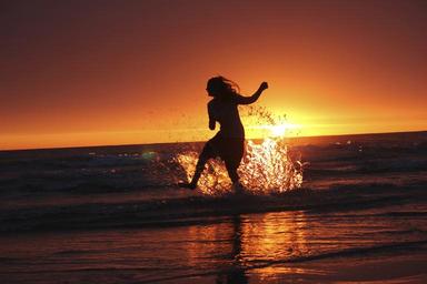 Keywords: woman happy sea water sunset holiday swim inject