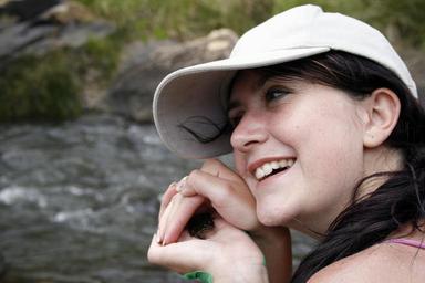 Keywords: woman holding frog female young caucasian adult girl happy hands holding fun leisure hands smile
