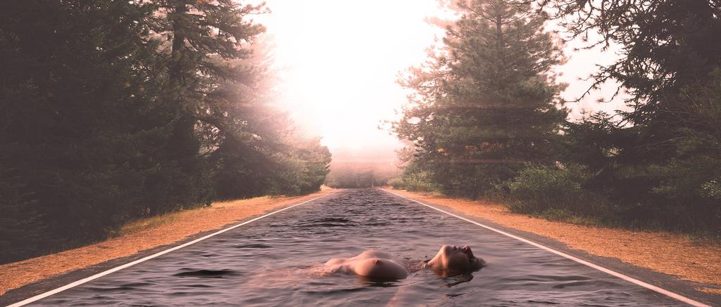 Keywords: woman naked swim female erotic sexy body act nudes human fantasy water femininity sky nature road trees avenue dazzle abendstimmung peaceful rest relax pretty beautiful face romantic mystical young woman atmosphere pose mood sun