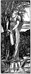 Keywords: woman standing thinking looking down tree scenic background lady female young youth shyness long gown tall