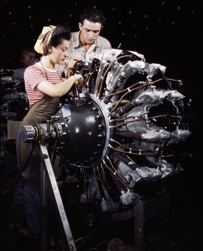 | Keywords: Woman working on R-1830 engine at Douglas Aircraft 1942.jpg  A women is trained as an engine mechanic at the Douglas Aircraft Company Long Beach California USA in October 1942 The engine is a Pratt Whitney R-1830 Twin Wasp 14-cylinder radial engine for a Douglas C-47 Skytrain transport plane LOC-image fsac 1a35329 1942-12 Alfred T Palmer frame removed PD-USGov Women at work in the United States Pratt Whitney R-1830 World War II color photographs of the US Homefront Photographs by Alfred T Palmer |