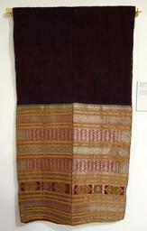 Keywords: Woman's head cloth (tilakuang), Minangkabau people, Western Sumatra, Indonesia, silk, silver thread - Textile Museum of Canada - DSC00998.JPG en Exhibit in the Textile Museum of Canada 55 Centre Avenue Toronto Ontario Canada Photography was permitted in the museum without restriction 2013-07-04 14 23 33 own Daderot cc-zero Textiles in the Textile Museum of Canada Uploaded with UploadWizard