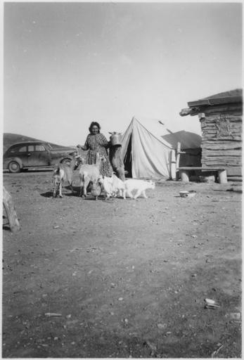 Keywords: Women feeding goats - NARA - 285246.jpg Scope and content General notes 285246 Local identifier Department of the Interior Bureau of Indian Affairs Aberdeen Area Office Cheyenne River Agency 1949 - NARA's Central Plains Region Kansas City NREA 400 West Pershing Road Kansas City MO 64108 other date ~ 1940 Record group Record Group 75 Records of the Bureau of Indian Affairs 1793 - 1999 Record group ARC 404 Cheyenne River Agency Photographs compiled 1900 - 1960 Series ARC 285217 File unit File unit ARC Variant control numbers NAIL Control Number NRE-75-CR PHO -828 Other versions <gallery> File Women_feeding_goats_-_NARA_-_285246 tif tif File Women_feeding_goats_-_NARA_-_285246 jpg jpg </gallery> NARA-cooperation PD-USGov Cheyenne 1940 Cheyenne River Indian Reservation Women at work in the United States 1940s Goats in the United States Tents in the United States 1940s Log cabins in South Dakota 1940s South Dakota in the 1940s NARA images of South Dakota Black and white photographs of South Dakota