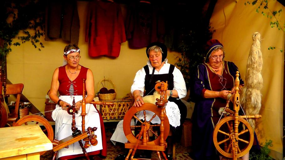 Keywords: women spin spinning wheel hand craft middle ages wool thread old wood profession work hand labor clothing woman