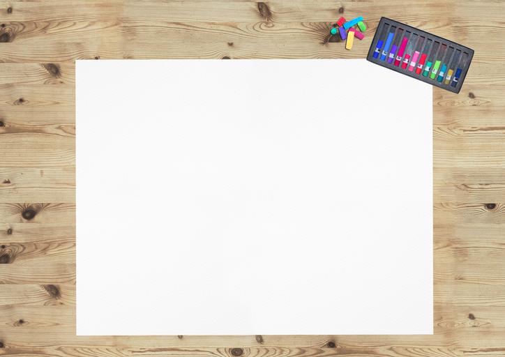 Keywords: wood desk chalks pastels art create creative blank empty template paper