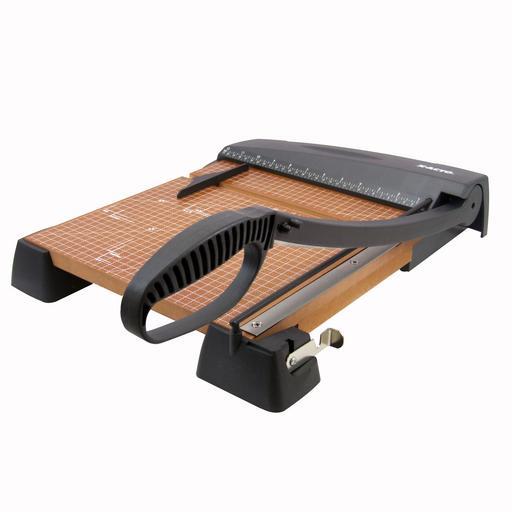 Keywords: Wood Guillotine Trimmer.JPG en This wood guillotine trimmer by X-ACTO cuts 15 sheets of paper using a self-sharpening blade This heavy duty trimmmer includes an adjustible guide safety guard and safety latch for cutting arm own Qxtn1423 3/15/2011 Cc-zero Paper cutters |
