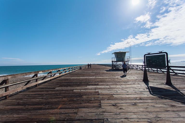 Keywords: wood pier dock beach ocean sea sunshine sunny blue sky clouds summer