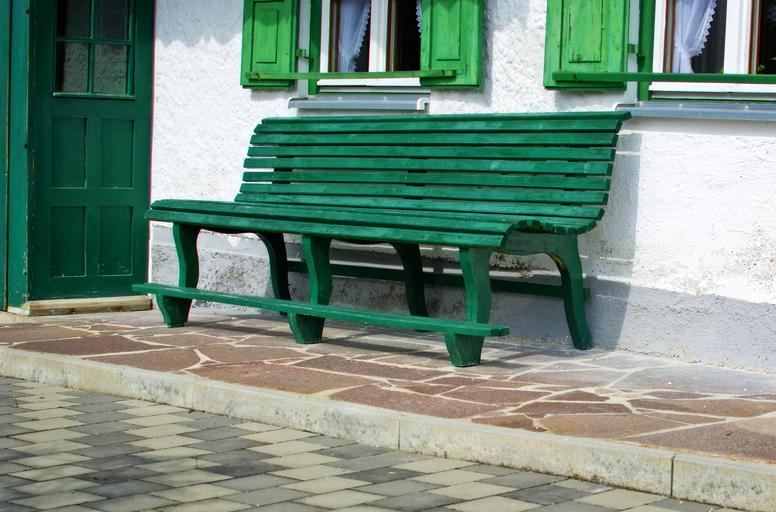 Keywords: wooden bench bank bench click seat rest home hof out sit wood relax after work quiet zone