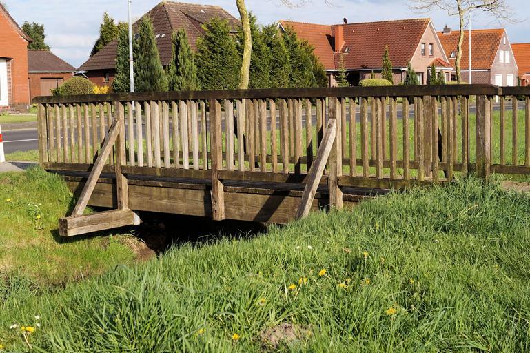 Keywords: wooden bridge crossing water run idyllic beautiful