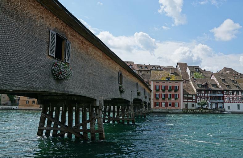Keywords: wooden bridge customs bridge trusses saddle roof rhine old town switzerland germany germany-switzerland d-ch ch-d ch-eu eu-ch diessenhofen gailingen thurgau switzerland