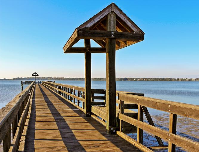 Keywords: wooden bridge pedestrian tampa bay usa sea nature landscape dawn blue sky walk fishing
