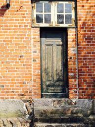 Keywords: wooden door brick red window building stone wall brick wall masonry stone stairway old shabby input