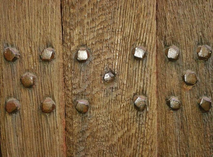 Keywords: wooden door door input goal wood pattern metal antique close up close rivet capping old entry grain wood grain metal rivets boards wooden boards nailed wood joints brown shades of brown structure structures wood structures joints