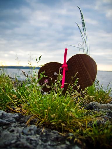 Keywords: wooden heart landscape heart love idyllic luck affection sky