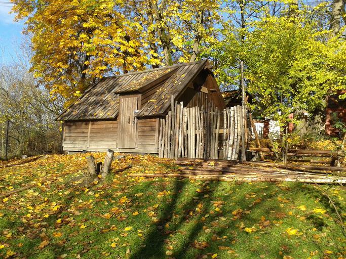 Keywords: wooden hut woods forest autumn outdoors lifestyle
