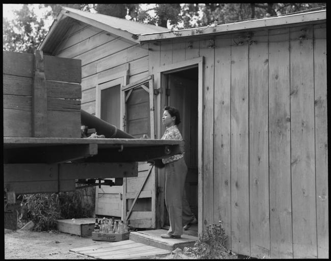 | Keywords: Woodland, California. Scene on farm being evacuated by people of Japanese ancestry. The mother is . . . - NARA - 537767.jpg Scope and content The full caption for this photograph reads Woodland California Scene on farm being evacuated by people of Japanese ancestry The mother is helping load a truck which has been brought by a friend who is assisting the family with the packing because of the father's internment in South Dakota General notes 537767 Local identifier 210-G-C448 Department of the Interior War Relocation Authority 02/16/1944 - 06/30/1946 NARA-Author Lange Dorothea 1895-1965 Photographer 1372774 <br /> Still Picture Records Section Special Media Archives Services Division NWCS-S National Archives at College Park 8601 Adelphi Road College Park MD 20740-6001 1942-05-20 Record group Record Group 210 Records of the War Relocation Authority 1941 - 1989 Record group ARC 537 Central Photographic File of the War Relocation Authority compiled 1942 - 1945 Series ARC 536000 File unit File unit ARC Variant control numbers NAIL Control Number NWDNS-210-G-C448 Other versions <gallery> File Woodland _California _Scene_on_farm_being_evacuated_by_people_of_Japanese_ancestry _The_mother_is_ _ _ _-_NARA_-_537767 tif tif File Woodland _California _Scene_on_farm_being_evacuated_by_people_of_Japanese_ancestry _The_mother_is_ _ _ _-_NARA_-_537767 jpg jpg </gallery> NARA-cooperation PD-USGov Japanese American internment processing in Woodland California Women at work in California Dorothea Lange |