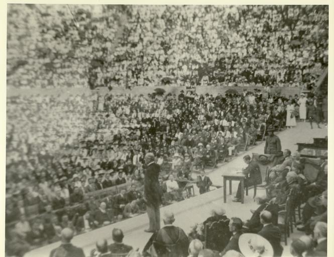 Keywords: cross country tour president wilson speech crowd monochrome Local Accession Number: 2049 Description: Wilson addresses an audience in Berkley, CA on his Western Speaking tour. Photographer: Unknown Source: Unknown Size: 10x8 Medium: Print, Black and White Date: 1919 Local Accession Number: 2049 Description: Wilson addresses an audience in Berkley, CA on his Western Speaking tour. Photographer: Unknown Source: Unknown Size: 10x8 Medium: Print, Black and White Date: 1919 |