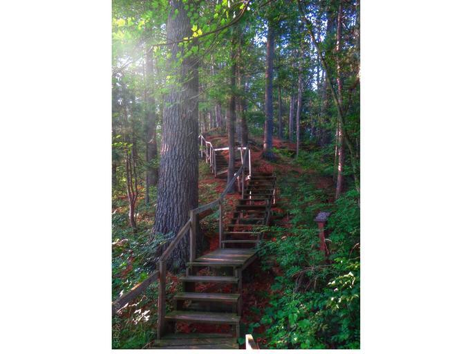 Keywords: woods forrest trail stairs pine forest forest trail