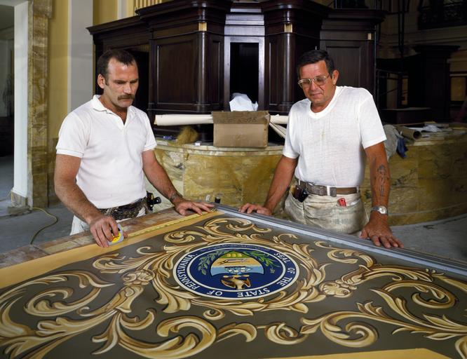 | Keywords: Workers examine state symbols to be placed on the ceiling during the Willard Hotel's restoration, Washington, D.C LCCN2011634858.tif 1 transparency color ; 4 x 5 in or smaller Notes Digital image produced by Carol M Highsmith to represent her original film transparency; some details may differ between the film and the digital images ; Forms part of the Selects Series in the Carol M Highsmith Archive ; Gift and purchase; Carol M Highsmith; 2011; DLC/PP-2011 124 ; Title date subject note and keywords provided by the photographer ; Photograph taken during the 1980s ; Credit line Photographs in the Carol M Highsmith Archive Library of Congress Prints and Photographs Division between 1980 1990 Creator Carol M Highsmith Library of Congress Catalog http //lccn loc gov/2011634858 Image download https //cdn loc gov/master/pnp/highsm/16600/16665a tif Original url http //hdl loc gov/loc pnp/highsm 16665 No known restrictions on publication LOC-image highsm 16665 PD-Highsmith Images uploaded by Fæ Photographs by Carol M Highsmith |