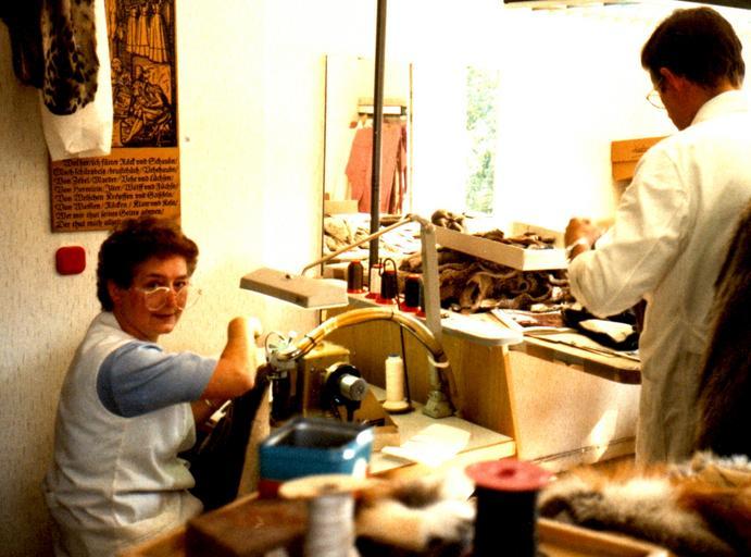 | Keywords: Working at the fur sewing machine.jpg Pelznäherin an der Pelznähmaschine mit Einstreichgebläse Rechts Kürschnermeister Wilhelm Fahnenstich An der Wand der Holzschnitt von Jost Amman aus dem Jahr 1568 mit den Versen von Hans Sachs žWohlher ich fütter Röck und Schaubn mach Schürtzbelz Brustthuch Vehehaubn Pelzmodelle Fahnenstich Martinistraße 12 45657 Recklinghausen Own ~ 1978 Fahni <span class signature-talk >talk</span> 08 22 1 November 2010 UTC n class signature-talk >talk</span> 21 18 31 October 2010 UTC de German Wikipedia 1 Pelzmodelle Fahnenstich Fur sewing machines Fur sewing Fur manufacturing Fur fashion in 1978 DEFAULTSORT Fahnenstich Andreas |