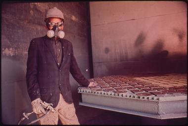 | Keywords: WORKMAN WEARS RESPIRATORY PROTECTION MASK WHILE SPRAY PAINTING AT AVONDALE SHIPYARD - NARA - 546032.jpg Scope and content General notes 546032 Local identifier 412-DA-3545 Environmental Protection Agency 12/02/1970 - NARA-Author Messina John 1940- Photographer 8464458 <br /> New Orleans Orleans Louisiana United States North and Central America inhabited place 4202431 29 95 -90 067 <br /> Still Picture Records Section Special Media Archives Services Division NWCS-S National Archives at College Park 8601 Adelphi Road College Park MD 20740-6001 01/1973 Record group Record Group 412 Records of the Environmental Protection Agency 1944 - 2006 Record group ARC 708 DOCUMERICA The Environmental Protection Agency's Program to Photographically Document Subjects of Environmental Concern compiled 1972 - 1977 Series ARC 542493 File unit File unit ARC Variant control numbers Agency-Assigned Identifier 060/05/003545<br /> NAIL Control Number NWDNS-412-DA-3545 Other versions <gallery> File WORKMAN_WEARS_RESPIRATORY_PROTECTION_MASK_WHILE_SPRAY_PAINTING_AT_AVONDALE_SHIPYARD_-_NARA_-_546032 tif tif File WORKMAN_WEARS_RESPIRATORY_PROTECTION_MASK_WHILE_SPRAY_PAINTING_AT_AVONDALE_SHIPYARD_-_NARA_-_546032 jpg jpg </gallery> NARA-cooperation PD-USGov John Messina - DOCUMERICA Avondale Shipyard |