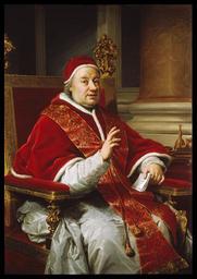 | Keywords: Workshop of Anton Raphael Mengs - Portrait of Pope Clement XIII - Walters 371700.jpg Clement XIII was of the Venetian Rezzonico family and reigned as pope from 1758 to 1769 Mengs did several versions of Clement's portrait and this one was probably carried out for Apostolic Vicar Domenico Rossi whose name appears on the letter held by the pope For centuries the blessing gesture directed to the viewer had been common in images of Christ's representative on earth Mengs rejected the fluid brushstrokes and dynamic pictorial expressions of Baroque and Rococo art Clarity of forms and outlines typical of Neoclassicism defines his manner Zeri Italian paintings in the Walters Art Gallery 424 534-535 1759 Baroque Oil on canvas Pained surface cm 137 7 98 2 accession number 37 1700 31435 Don Marcello Massarenti Collection Rome date and mode of acquisition unknown 1897 catalogue no 779 as Pope Clement VIII by Subleyras Henry Walters city Baltimore Walters Art Museum Henry Walters Acquired by Henry Walters with the Massarenti Collection 1902 Transcription On letter PER DOMENICO ROSSI place of origin Rome Italy Walters Art Museum license 2D Baroque paintings in the Walters Art Museum Portrait paintings by Anton Raphael Mengs Italian nobility Male portraits by Anton Raphael Mengs Clerics with ermine garment Camauro Mozzettas in art Paintings by Anton Raphael Mengs with fur Fur fashion in 1759 |
