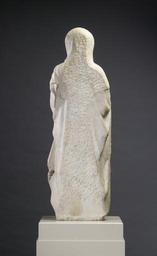 Keywords: Workshop of Arnolfo di Cambio - Madonna and Child - Walters 27561 - Back.jpg This majestic statue would originally have been placed in a niche or arch-shaped enclosure decorating an interior architectural structure such as a tomb or ciborium a canopy-like structure placed over the altar Arnolfo designed numerous such monuments though many have been damaged or dismantled Arnolfo's sculpture is influenced by his observation of antique models The drapery derives from Roman togas which he would have seen represented on ancient sarcophagi Classical borrowings are complemented by his dedication to naturalism evident in the face and gesture of the Christ child which goes beyond that of his contemporaries The Virgin's head was probably completed by an assistant Arnolfo was also a famous architect; his buildings included the Cathedral of Florence ca 1291 Medieval marble cm 78 8 26 4 23 9 accession number 27 561 10008 Christine Alexander Mrs Breckenridge Long Rome and Laurel Maryland date of acquisition unknown by purchase Walters Art Museum Henry Walters Bequest of Mrs Breckenridge Long 1959 Arnolfo Alle Origini del Rinascimento Fiorentino Museo dell'Opera del Duomo Firenze 2005-2006 place of origin Rome Italy Walters Art Museum license Medieval art in the Walters Art Museum Arnolfo di Cambio Media contributed by the Walters Art Museum needs category review Media contributed by the Walters Art Museum needs artist review |