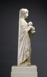 Keywords: Workshop of Arnolfo di Cambio - Madonna and Child - Walters 27561 - Right.jpg This majestic statue would originally have been placed in a niche or arch-shaped enclosure decorating an interior architectural structure such as a tomb or ciborium a canopy-like structure placed over the altar Arnolfo designed numerous such monuments though many have been damaged or dismantled Arnolfo's sculpture is influenced by his observation of antique models The drapery derives from Roman togas which he would have seen represented on ancient sarcophagi Classical borrowings are complemented by his dedication to naturalism evident in the face and gesture of the Christ child which goes beyond that of his contemporaries The Virgin's head was probably completed by an assistant Arnolfo was also a famous architect; his buildings included the Cathedral of Florence ca 1291 Medieval marble cm 78 8 26 4 23 9 accession number 27 561 10008 Christine Alexander Mrs Breckenridge Long Rome and Laurel Maryland date of acquisition unknown by purchase Walters Art Museum Henry Walters Bequest of Mrs Breckenridge Long 1959 Arnolfo Alle Origini del Rinascimento Fiorentino Museo dell'Opera del Duomo Firenze 2005-2006 place of origin Rome Italy Walters Art Museum license Medieval art in the Walters Art Museum Arnolfo di Cambio Media contributed by the Walters Art Museum needs category review Sculptures of Madonna and Child Media contributed by the Walters Art Museum needs artist review |