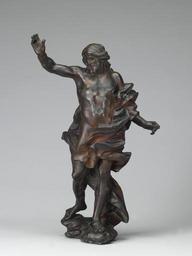 | Keywords: Workshop of Gian Lorenzo Bernini - The Risen Christ - Walters 542281 - View A.jpg In 1673 Bernini was commissioned by Pope Clement X to design gilded figures of the twelve apostles and the Risen Christ to crown the tabernacle of the Chapel of the Blessed Sacrament in St Peter's Basilica Working from Bernini's designs Giovanni Rinaldi made the models Girolamo Lucenti the bronze founder had problems casting the Risen Christ and the initial bronze cast had a flaw across its chest This cast now partially repaired and in the Walters' collection was left in a rough state The model was recast gilded and installed in St Peter's Christ's idealized body recalls ancient sculptures of the sun-god Apollo praised as having a perfect physique His striding pose is beautifully balanced while his ascent toward heaven is suggested by the deeply carved fluttering drapery seemingly responding to an invisible wind and creating a strong play of light and shadow Bernini was the greatest sculptor of his age He imbued figures of both metal and marble with an unsurpassed sense of life and motion between 1673 1674 Baroque bronze cm 44 accession number 54 2281 1418 Henry Walters Baltimore formerly in the Baltimore office of Henry Walters date and mode of acquisition unknown C Morgan Marshall date and mode of acquisition unknown Walters Art Museum Gift of C Morgan Marshall 1942 Going for Baroque The Walters Art Gallery Baltimore 1995-1996 Vatican Treasures Early Christian Renaissance and Baroque Art from the Papal Collections The Cleveland Museum of Art Cleveland 1998 A Magnificent Age Masterpieces from the Walters Art Museum Baltimore The Nelson-Atkins Museum of Art Kansas City; Mint Museum of Art Charlotte; The Walters Art Museum Baltimore 2002-2004 The Sculpture of Gianlorenzo Bernini Kimbell Art Museum Fort Worth 1982 The Taste of Maryland Art Collecting in Maryland 1800-1934 The Walters Art Gallery Baltimore 1984 The Allure of Bronze The Walters Art Gallery Baltimore 1995 place of origin Rome Italy Walters Art Museum license Baroque sculpture in the Walters Art Museum Sculptures by Gianlorenzo Bernini Media contributed by the Walters Art Museum needs category review |