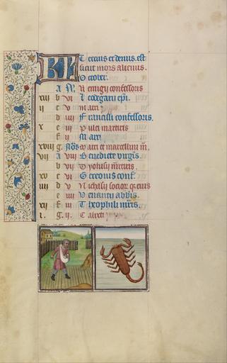 | Keywords: Workshop of Willem Vrelant (Flemish, died 1481, active 1454 - 1481) - A Man Sowing; Zodiacal Sign of Scorpio - Google Art Project.jpg  1481 died 1481 active 1454 - 1481 6832276 Workshop of Willem Vrelant Flemish Flemish 1481 /collection/the-j-paul-getty-museum/artwork/a-man-sowing-zodiacal-sign-of-scorpio-workshop-of-willem-vrelant-flemish-died-1481-active-1454-1481/6832293/ Workshop of Willem Vrelant Flemish died 1481 active 1454 - 1481 illuminator /artist/guillaume-vrelant/6799969/ 6799969 /collection/the-j-paul-getty-museum/ The J Paul Getty Museum 343005 http //www getty edu/museum 3/12/2012 2 52 54 PM /collection/the-j-paul-getty-museum/artwork/a-man-sowing-zodiacal-sign-of-scorpio-workshop-of-willem-vrelant-flemish-died-1481-active-1454-1481/6832293/ 1460 early 1460s Scorpio Tempera colors gold leaf and ink on parchment 256 6832293 True 1463 3/25/2012 12 43 55 PM lido getty edu-gm-obj3909 http //www getty edu/art/gettyguide/artObjectDetails artobj 3909 http //www getty edu/legal/copyright html Folio 1460 1470 Bruges Belgium Creation w173 x h256 cm early 1460s False 0 626953125 Part a-man-sowing-zodiacal-sign-of-scorpio-workshop-of-willem-vrelant-flemish-died-1481-active-1454-1481 A Man Sowing; Zodiacal Sign of Scorpio a 173 Tempera colors gold leaf and ink on parchment Scorpio http //www getty edu/legal/copyright html special url_id pAGnYi3DJ7cqZg PD-old-100-1923 1481 Category Scorpio astrology Google Art Project works by Willem Vrelant workshop of Sowing in art Signs of Western astrology in art Zodiac in medieval miniatures MS LUDWIG IX 8 Getty museum - Arenberg Hours |
