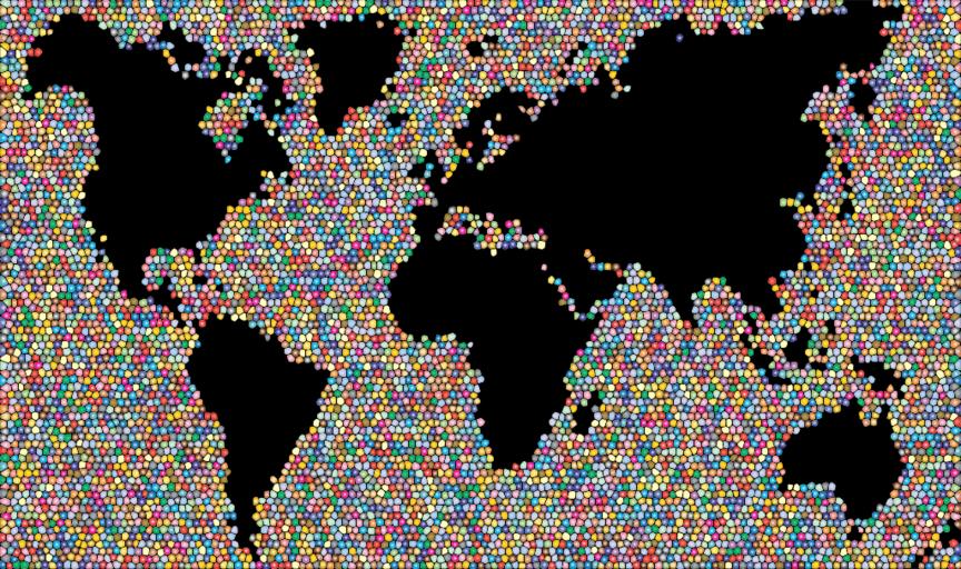 Keywords: world earth planet globe cartography geography map mosaic colorful prismatic chromatic geometric art education learning school vector svg