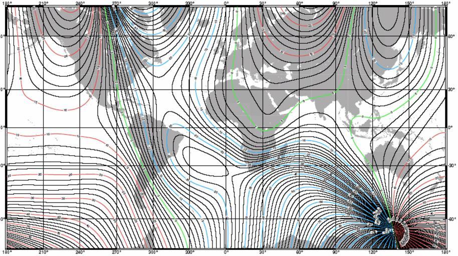 | Keywords: World Magnetic Declination Map 2005.png World Magnetic Declination 2005 Source National Oceanic Atmospheric Administration NOAA U S Department of Commerce http //www ngdc noaa gov/seg/WMM/data/wmm-D05 pdf Green line 0° Red lines positive east Blue lines negative west PD-USGov Magnetic field maps of the world |