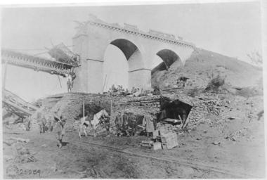 Keywords: World War I photographs - NARA - 285375.jpg Scope and content Army photographs Battle of St Mihiel-American Engineers returning from the front; tank going over the top; group photo of the 129th Machine gun Battalion 35th Division before leaving for the front; views of headquarters of the 89th Division next to destroyed bridge; Company E 314th Engineers 89th Division and making rolling barbed wire entanglements General notes 285375 Local identifier Department of the Interior Bureau of Indian Affairs Haskell Indian Junior College 1970 - 1993 NARA's Central Plains Region Kansas City NREA 400 West Pershing Road Kansas City MO 64108 1918 Record group Record Group 75 Records of the Bureau of Indian Affairs 1793 - 1999 Record group ARC 404 Haskell Indian Nations University Photographs compiled 1900 - 1960 Series ARC 285363 File unit File unit ARC Variant control numbers NAIL Control Number NRE-75-HAS PHO -66 Other versions <gallery> File World_War_I_photographs_-_NARA_-_285375 tif tif File World_War_I_photographs_-_NARA_-_285375 jpg jpg </gallery> NARA-cooperation PD-USGov Battle of St Mihiel United States armed forces abroad United States Army soldiers 1918 Damaged bridges in France Iron truss beam bridges in France Stone arch bridges in France World War I forces of the United States in France World War I destruction in France