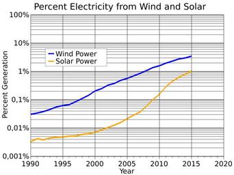 | Keywords: World Wind and Solar Generation Percentage-BP-semilog.svg translate yes en World wind and solar generation percentage as a semilog plot In a semi-log plot constant percentage increases appear as straight lines Data is from BP Statistical Review of World Energy 2015 http //www bp com/en/global/corporate/about-bp/energy-economics/statistical-review-of-world-energy html 2014-07-24 own Delphi234 current annually cc-zero Wind energy statistics Solar energy statistics | ||||