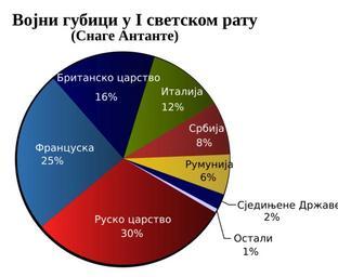 Keywords: WorldWarI-MilitaryDeaths-EntentePowers-Piechart sr.svg Piechart showing percentage of military deaths during World War I for the Entente Powers in Serbian Own 2008-02-18 User Dna-Dennis User Wereon Obradovic Goran Image WorldWarI-MilitaryDeaths-EntentePowers-Piechart svg Casualty statistics of World War I |