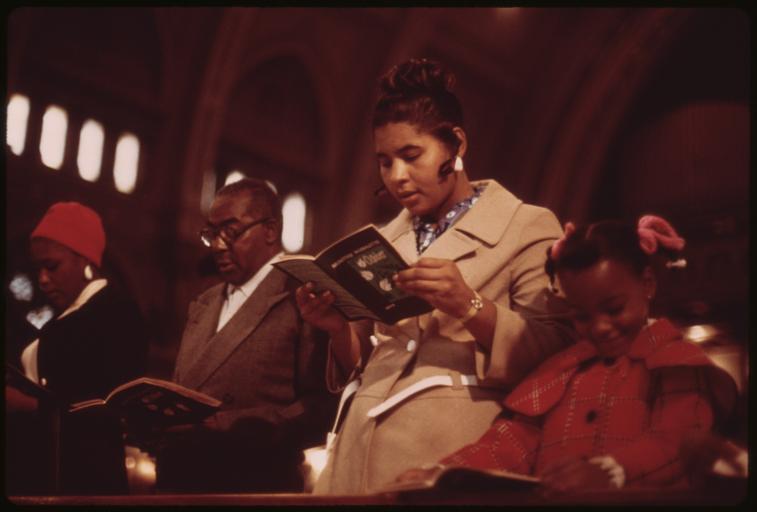 | Keywords: WORSHIPPERS AT HOLY ANGEL CATHOLIC CHURCH ON CHICAGO'S SOUTH SIDE. IT IS THE CITY'S LARGEST BLACK CATHOLIC CHURCH.... - NARA - 556239.jpg Scope and content General notes 556239 Local identifier 412-DA-13787 Environmental Protection Agency 12/02/1970 - NARA-Author White John H 1945- Photographer 4002141 <br /> Chicago Cook county Illinois United States North and Central America inhabited place 4201352 41 85 -87 65 <br /> Still Picture Records Section Special Media Archives Services Division NWCS-S National Archives at College Park 8601 Adelphi Road College Park MD 20740-6001 10/1973 Record group Record Group 412 Records of the Environmental Protection Agency 1944 - 2006 Record group ARC 708 DOCUMERICA The Environmental Protection Agency's Program to Photographically Document Subjects of Environmental Concern compiled 1972 - 1977 Series ARC 542493 File unit File unit ARC Variant control numbers Agency-Assigned Identifier 230/47/013787<br /> NAIL Control Number NWDNS-412-DA-13787 Other versions <gallery> File WORSHIPPERS_AT_HOLY_ANGEL_CATHOLIC_CHURCH_ON_CHICAGO'S_SOUTH_SIDE _IT_IS_THE_CITY'S_LARGEST_BLACK_CATHOLIC_CHURCH _-_NARA_-_556239 tif tif File WORSHIPPERS_AT_HOLY_ANGEL_CATHOLIC_CHURCH_ON_CHICAGO'S_SOUTH_SIDE _IT_IS_THE_CITY'S_LARGEST_BLACK_CATHOLIC_CHURCH _-_NARA_-_556239 jpg jpg </gallery> NARA-cooperation PD-USGov Holy Angels churches in the United States John H White 1973 in Chicago Bronzeville Praying African Americans and religion |