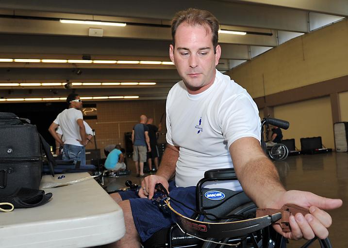 | Keywords: Wounded Warrior Pacific Trials 121112-N-IT566-002.jpg en Hospital Corpsman 2nd Class Ret Joseph Derbak assemblies his recurve bow as he prepares to practice for the archery competition during the Wounded Warrior Pacific Trials at Joint Base Pearl Harbor-Hickam on Nov 12 Nearly 50 seriously wounded ill and injured Sailors and Coast Guardsmen from across the country are going head-to-head in archery cycling track and field shooting sitting volleyball swimming and wheel chair basketball for one of 35 places on the 2013 Warrior Games Navy-Coast Guard team U S Navy Photo by Mass Communication Specialist 2nd Class David Kolmel 2012-11-12 Petty Officer 2nd Class David Kolmel https //www dvidshub net/image/783573 121112-N-IT566-002 2012-11-15 21 52 PEARL HARBOR HI US PD-USGov-Military-Navy 2012 in Pearl Harbor Sports at Pearl Harbor Archery in the United States Wounded Warrior 2012 Images from DoD uploaded by Fæ |