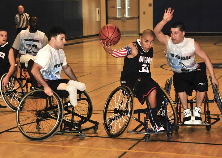 Keywords: Wounded Warriors play wheelchair basketball. (8446975315).jpg SAN DIEGO Feb 1 2013 Retired Marine Josue Barron 35 a member of the Naval Medical Center San Diego NMCSD Wolfpack wheelchair basketball team keeps the ball away from the Fort Sam Warriors Wolfpack is made up of 13 military and civilian members and is one of 10 teams in the West Coast Conference of the National Wheelchair Basketball Association The Wolfpacks beat the Warriors 54-35 and currently hold a 16-3 record U S Navy photo by Mass Communication Specialist Seaman Pyoung K Yi/Released 130201-N-VY375-127 Join the conversation http //www facebook com/USNavy www facebook com/USNavy http //www twitter com/USNavy www twitter com/USNavy http //navylive dodlive mil navylive dodlive mil https //www flickr com/photos/usnavy/8446975315/ Wounded Warriors play wheelchair basketball 2013-02-01 15 30 https //www flickr com/people/56594044 N06 Official U S Navy Page from United States of America PD-USNavy Official U S Navy Imagery https //flickr com/photos/56594044 N06/8446975315 2016-12-14 05 05 30 United States Government Work Files from the U S Navy Flickr stream Files uploaded by Reguyla People of the United States Navy |