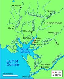 Keywords: Wouri estuary 1850.svg en Sketch map of the Wouri estuary and rivers illustrating Duala settlements around 1850 own Aymatth2 2011-02-21 Duala people Wouri River SVG maps of Cameroon Cc-zero