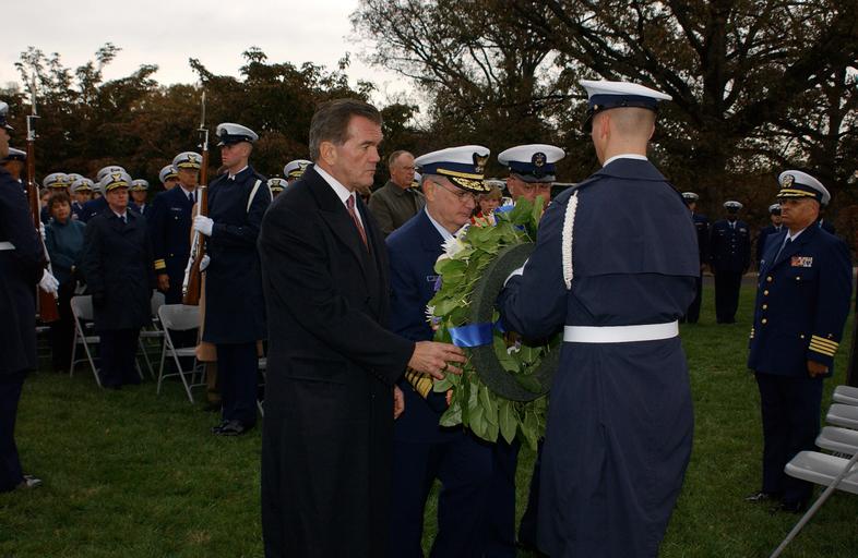 | Keywords: WREATH LAYING CEREMONY DVIDS1075049.jpg en ARLINGTON Va Nov 11 2003 --Department of Homeland Security Secretary Tom Ridge Coast Guard Commandant Adm Thomas H Collins and Master Chief Petty Officer of the Coast Guard Frank Welch place a wreath at Coast Guard Memorial today during a Veteran's Day Wreath Laying Ceremony held on Arlington National Cemetery USCG photo by Telfair H Brown Sr Unit U S Coast Guard District 5 DVIDS Tags SECURITY; CEREMONY; HOMELAND; COMMANDANT; THOMAS; DAY; H ; VETERAN'S; DHS; COLLINS; RIDGE; TOM; MCPOCG; CGVI; DVIDS Bulk Import 2003-11-11 Telfair Brown https //www dvidshub net/image/1075049/wreath-laying-ceremony 1075049 2013-12-11 16 48 ARLINGTON VA US PD-USGov Arlington National Cemetery Images from DoD uploaded by Fæ |