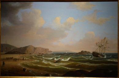 Keywords: Wreck of the 'Roma' by Fitz Henry Lane, 1846, oil on canvas - New Britain Museum of American Art - DSC09277.JPG en Exhibit in the New Britain Museum of American Art New Britain Connecticut USA This artwork is in the public domain because the artist died more than 70 years ago The museum permitted photographs of this exhibit without restriction 2013-06-27 12 25 19 own Daderot PD-old-70-1923 cc-zero Paintings in the New Britain Museum of American Art Uploaded with UploadWizard Fitz Hugh Lane |