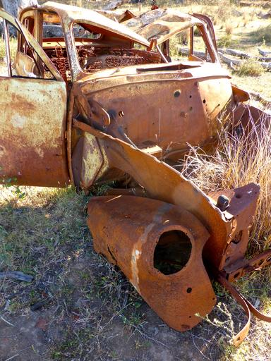 Keywords: wreck rusty vehicle weathered abandoned broken car smashed damaged